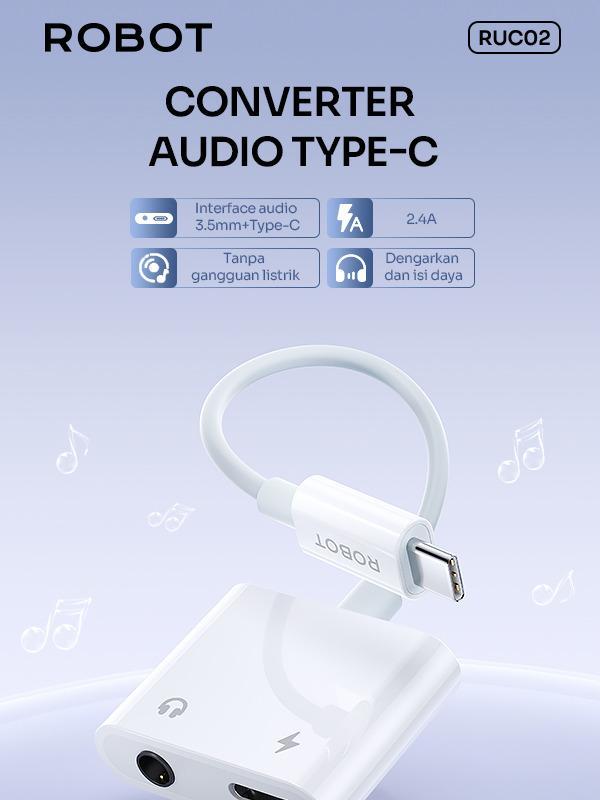 ADAPTER ROBOT RUC02 USB-C TO USB-C/AUDIO 3.5MM WHITE