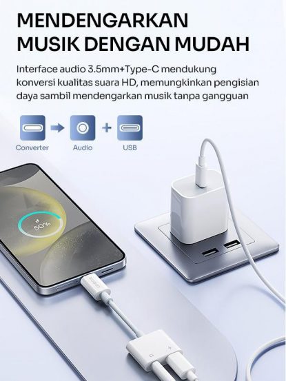 2. Kemampuan untuk isi daya & gunakan (dengarkan audio) secara bersamaan (simultaneous) — artinya kamu bisa mengisi daya perangkat sambil mendengarkan musik melalui adaptor ini.