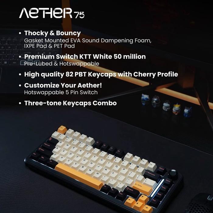 – PBT Keycap Cherry Profile: Tidak licin, awet, dan tahan aus.