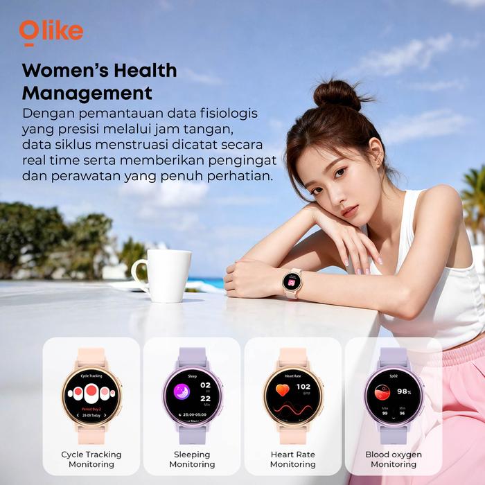 Jam tangan ini memiliki bentuk bulat dengan tampilan simpel dan elegan. Layar berukuran 1,27 inci dilengkapi dengan bezel ultra-tipis, menghadirkan pengalaman visual yang memukau.