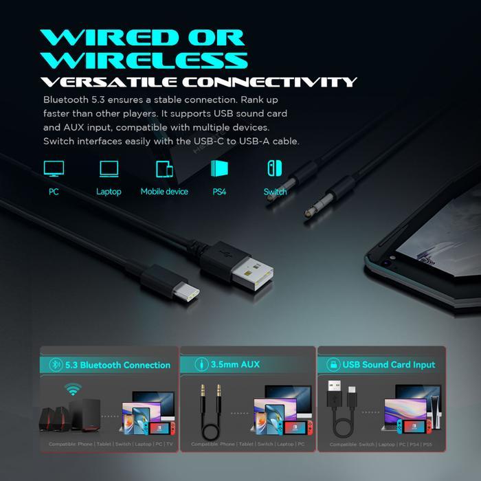 – Bluetooth 5.3, USB-A, USB-C, and 3.5mm AUX inputs for wide compatibility