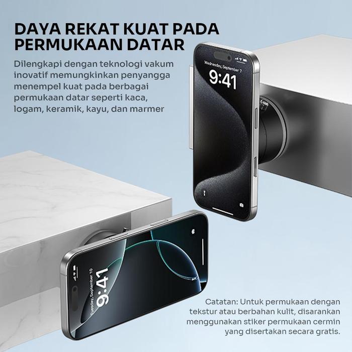 – Holder HP mobil multifungsi yang dapat dipasang di berbagai tempat seperti dashboard, kaca depan, layar navigasi atau permukaan datar lainnya.