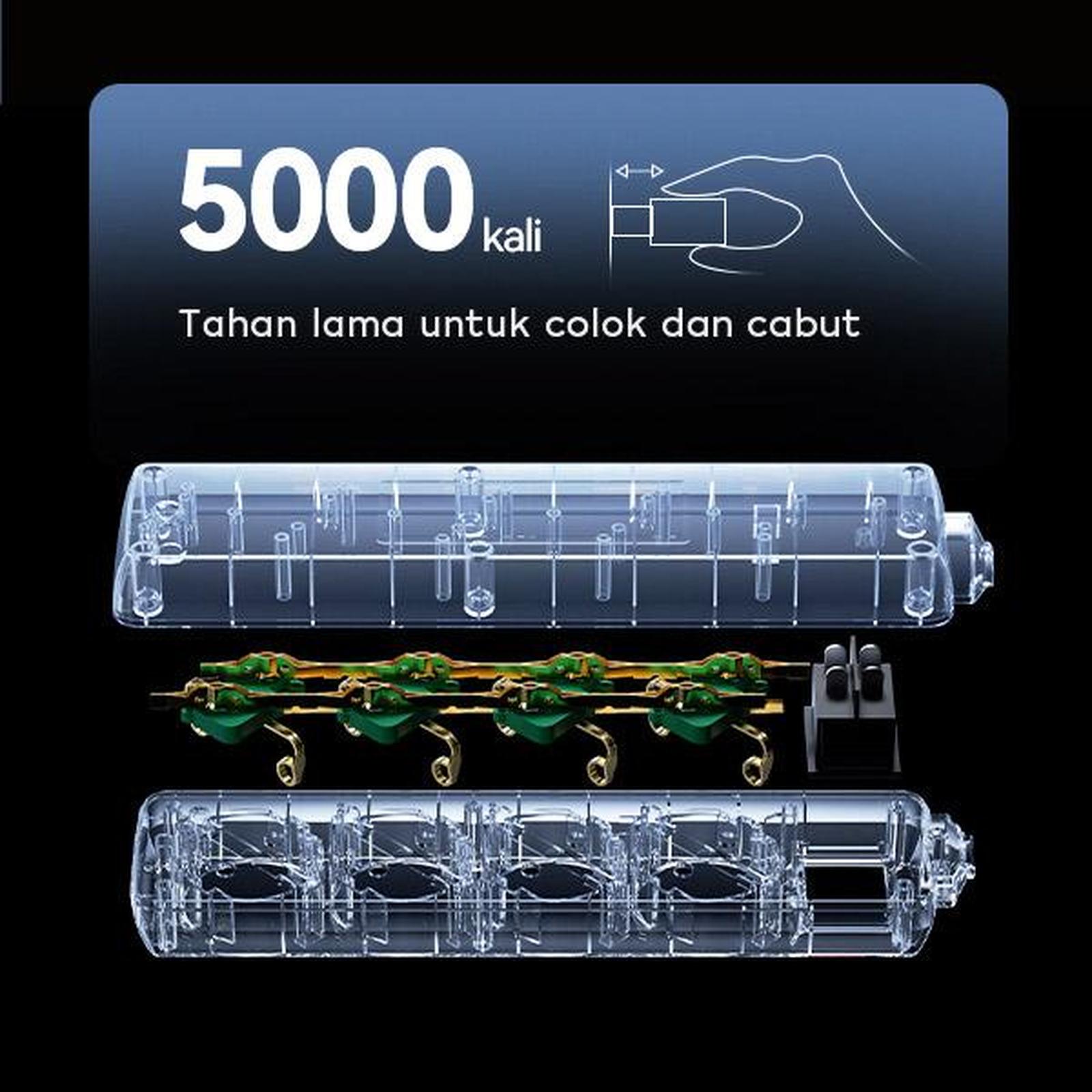 – Port AC: Dilengkapi 4 port AC, memudahkan penggunaan perangkat elektronik Anda. Pastikan koneksi yang stabil dan efisien.